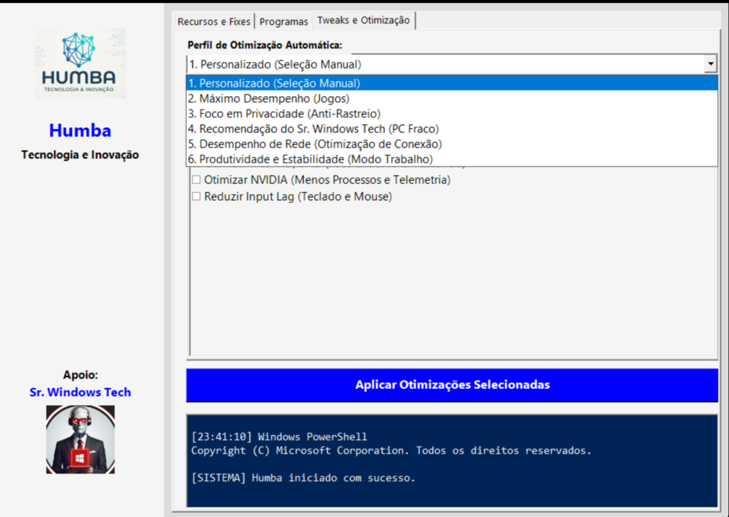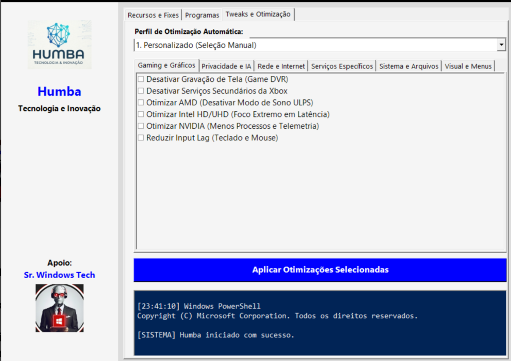 Se você quer ganhar tempo, padronizar suas otimizações e ter tudo em um só lugar, o Humba Tecnologia – Instalador Mestre é a ferramenta que você estava esperando.